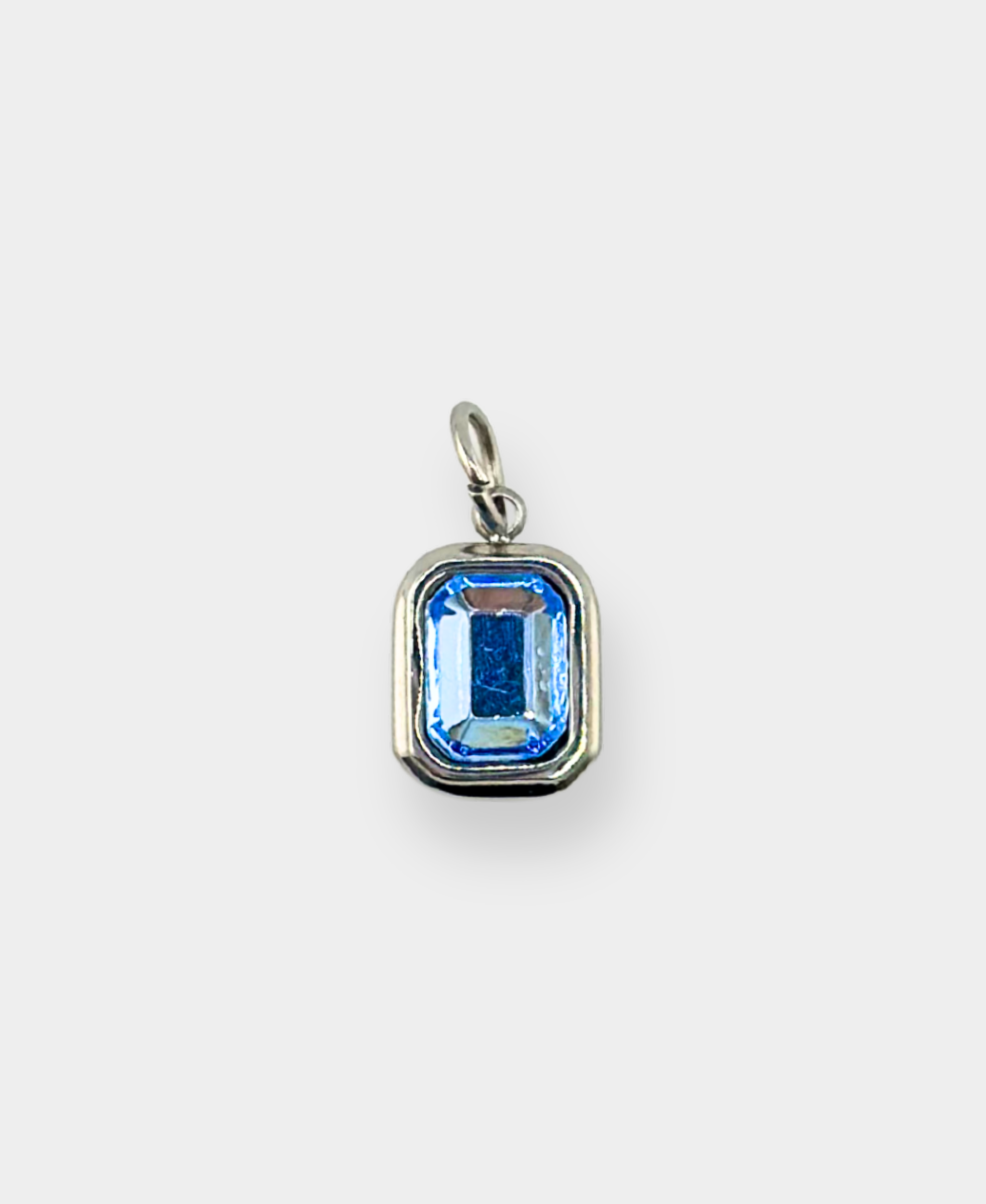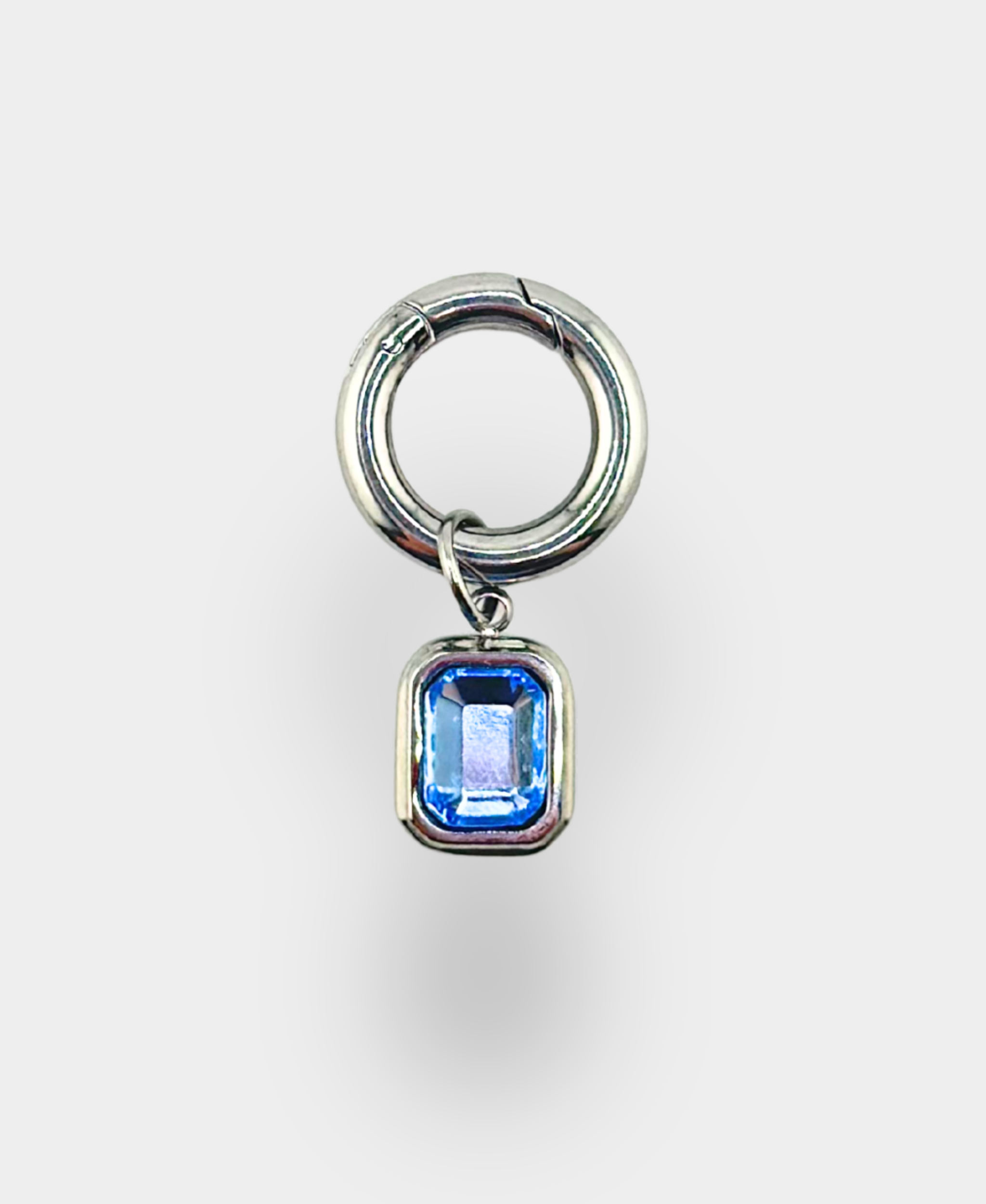 Square-shaped charm with a polished blue stone that adds a bright. The stone is known for keeping its shine over time thanks to its durable and smooth surface.