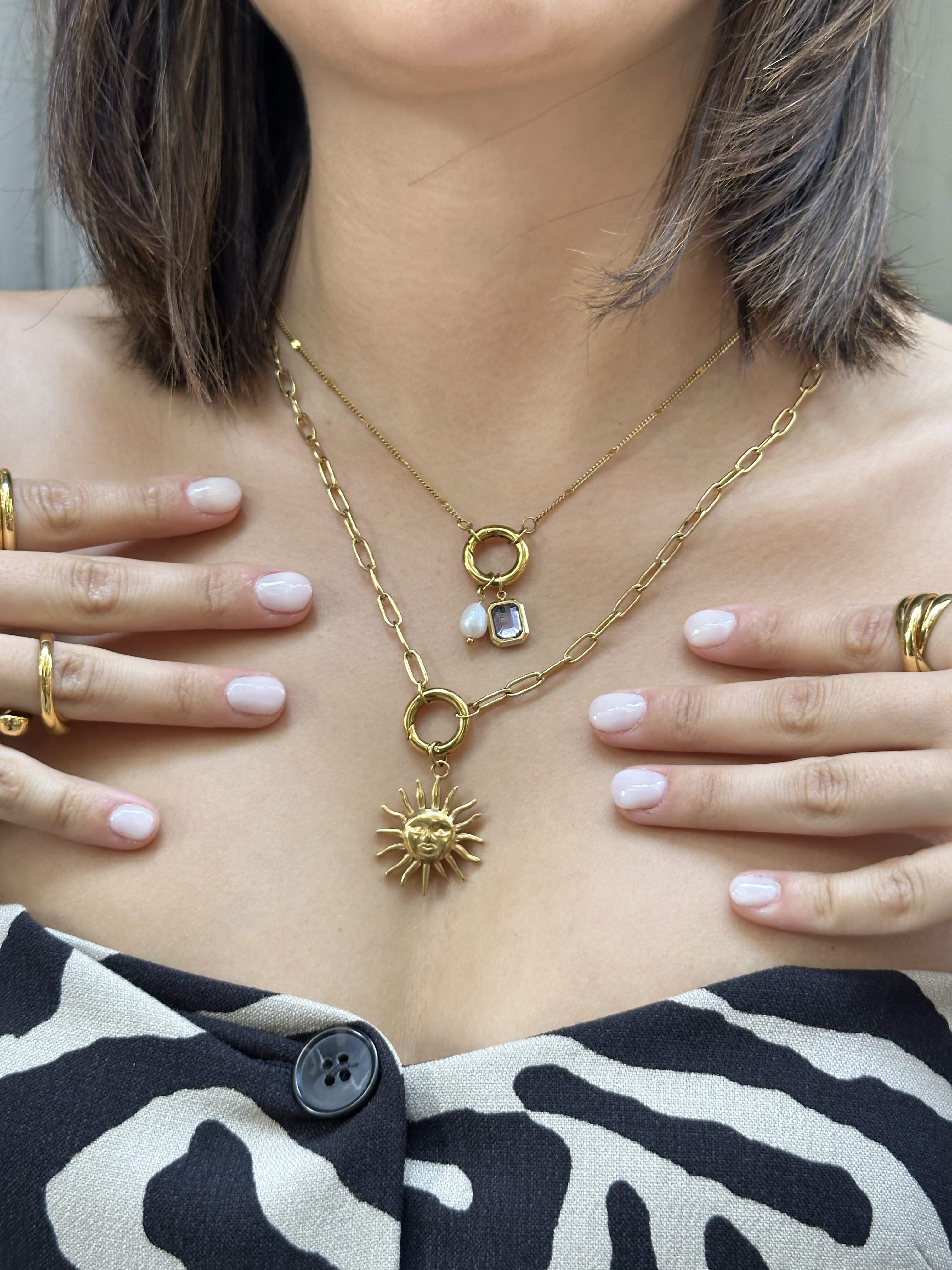 Capture the warmth of summer with this radiant gold or silver Sun Charm, inspired by the timeless symbolism of energy, light, and renewal. Perfect to clip onto your favorite Necklace or swimwear.