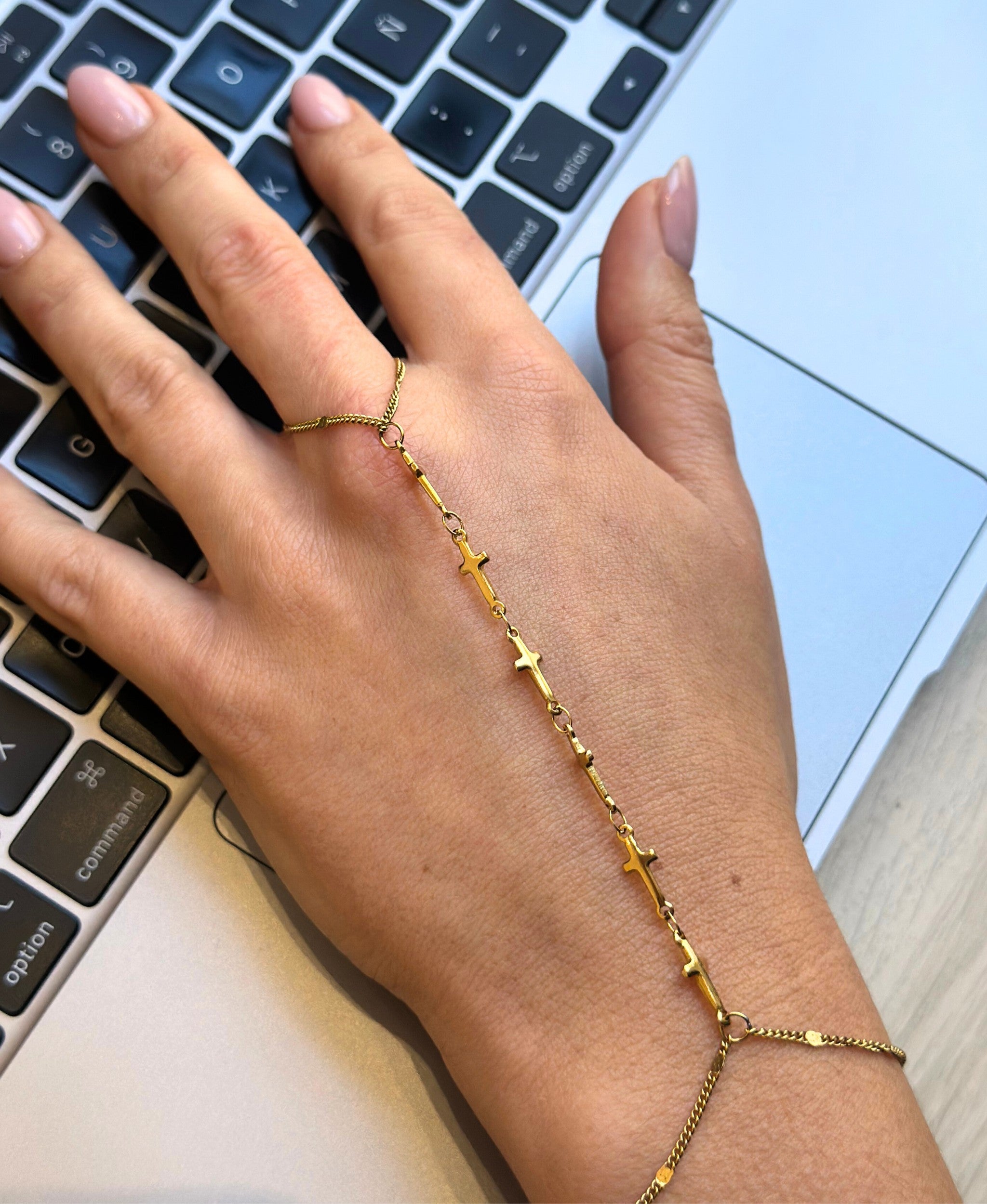 About Crossline Hand Chain - Gold