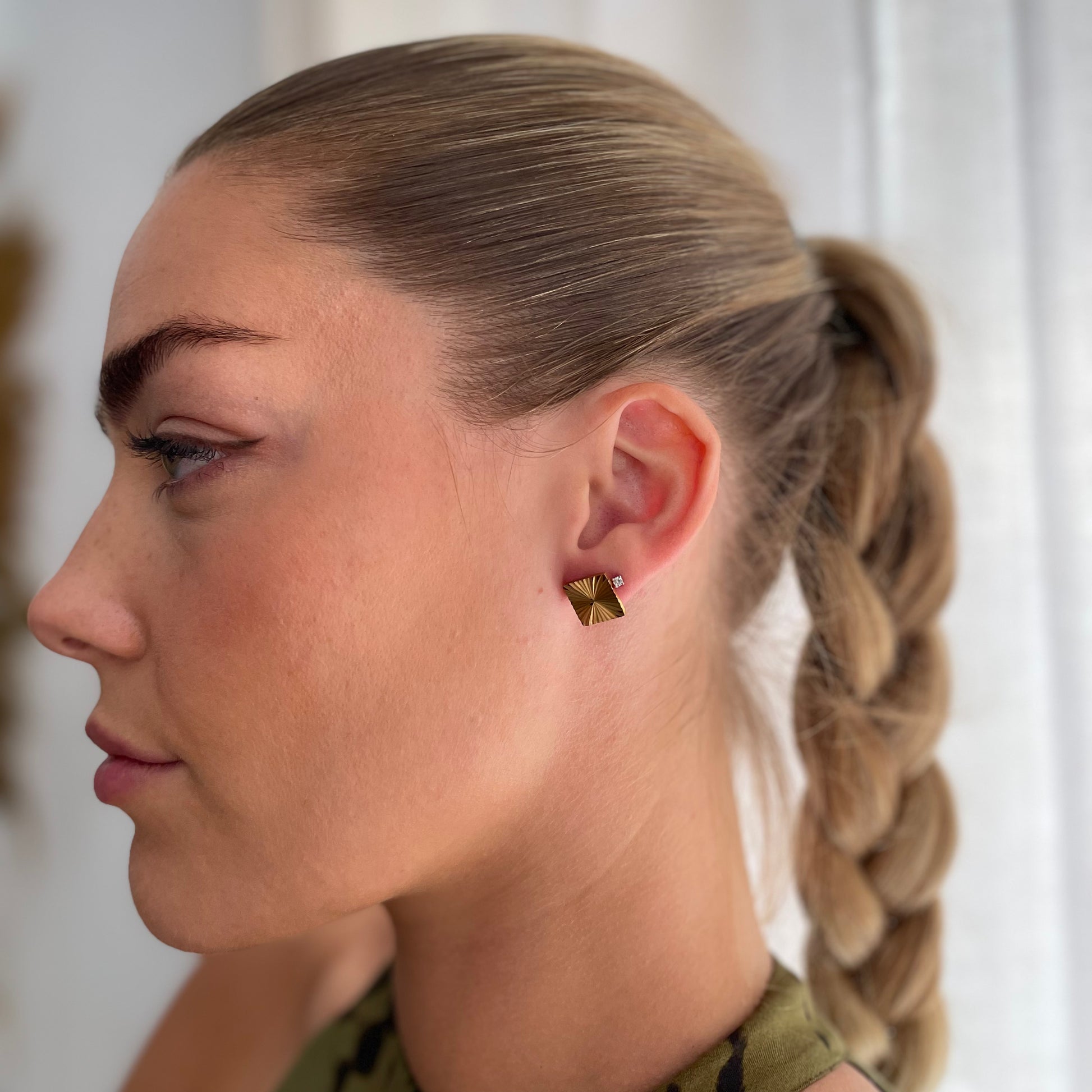 These 18k gold plated disc studs offer subtle elegance with a classic design. Crafted with the highest quality materials, these studs are designed to last and will add a touch of timeless beauty to any look.