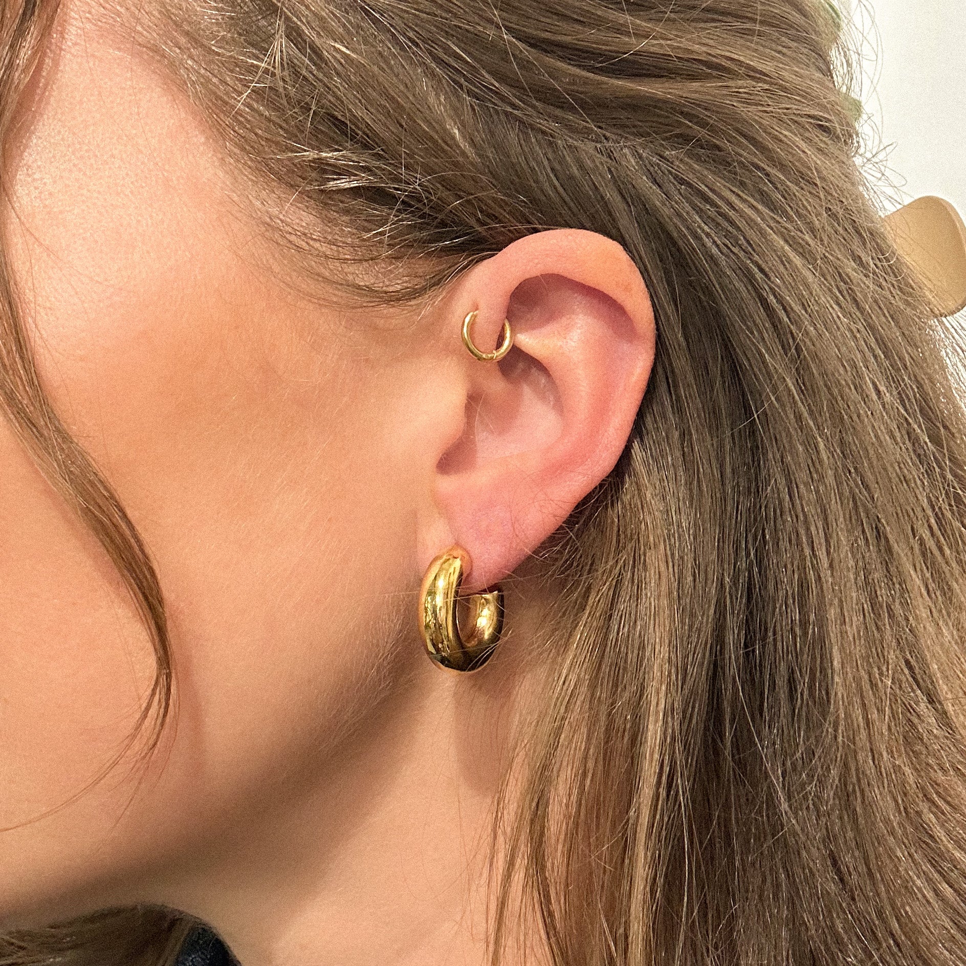 Mini Chunk Hoops offer an effortlessly chic look. Constructed with a classic design, the chunky mini hoops are best sellers and all-time favorites.