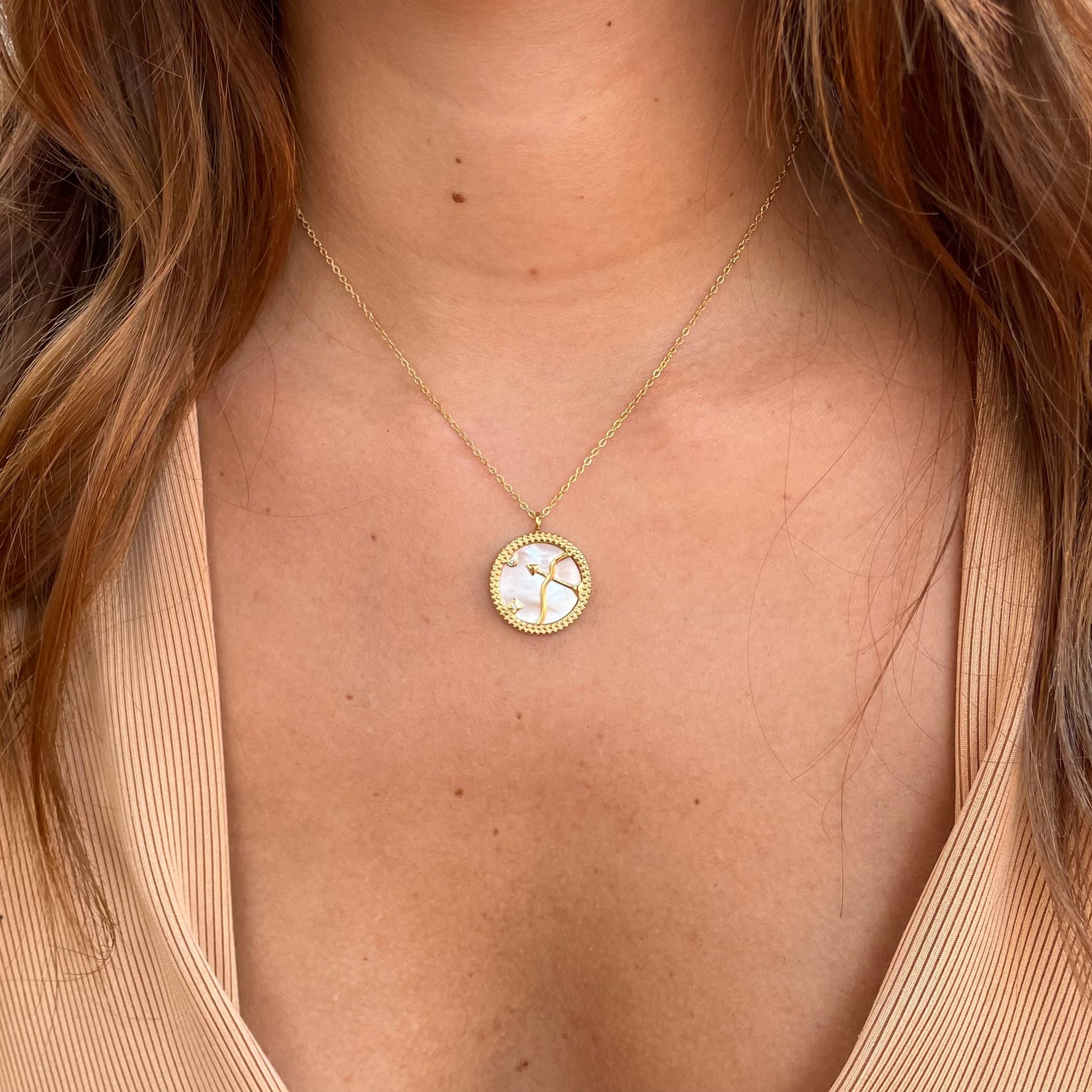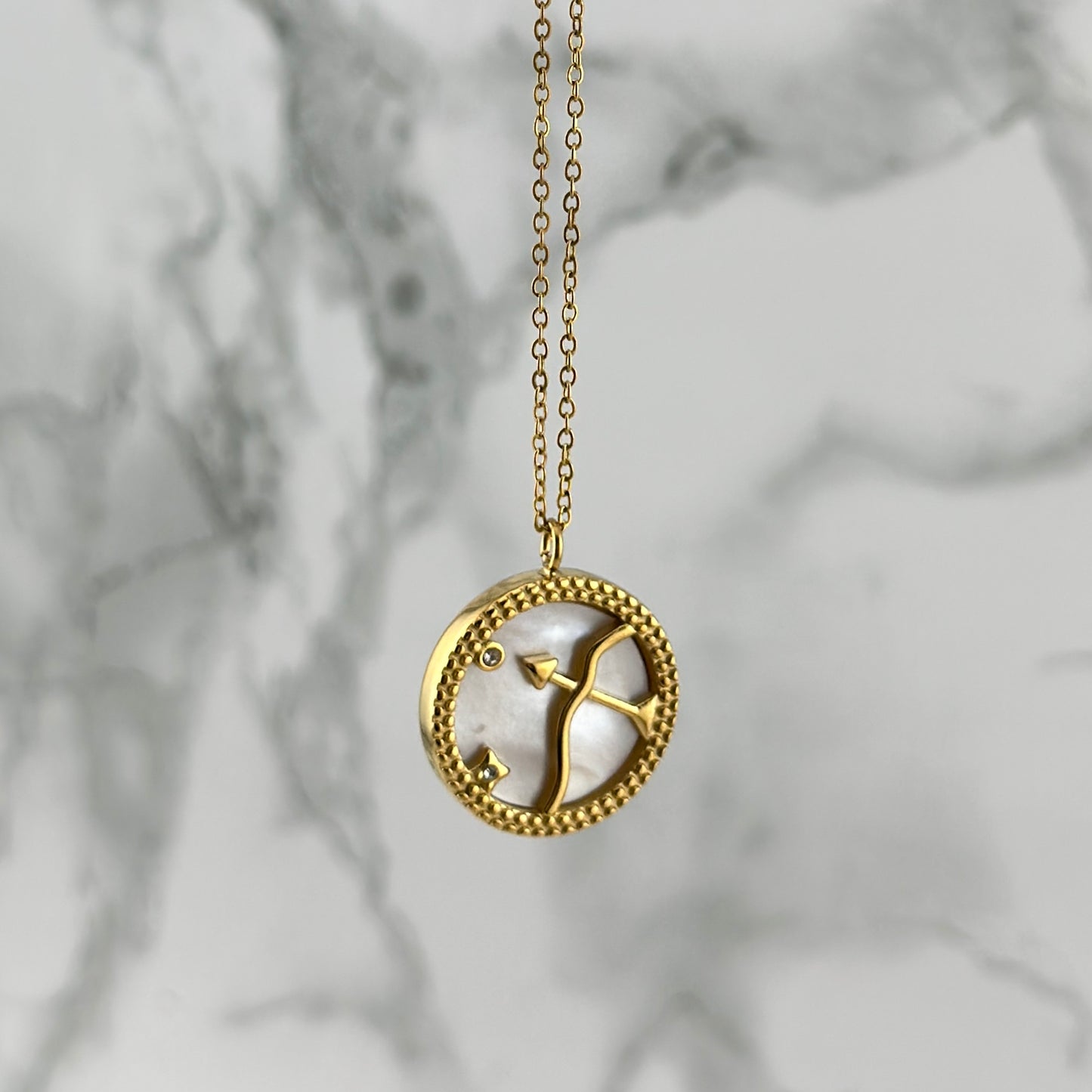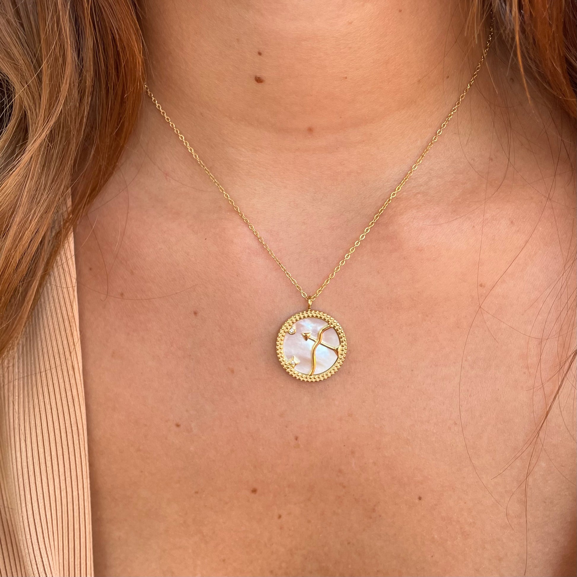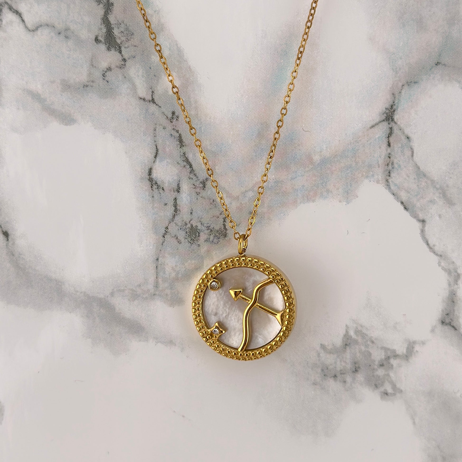 This beautiful Zodiac Sagittarius necklace is the perfect way to show your pride in the Archer. Crafted with fine metals, it's an elegant accessory that is sure to catch attention. Show off your sign's qualities of ambition and confidence with this stunning reminder of your astrological identity.